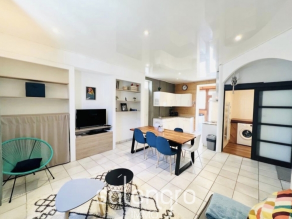 Charmant T6 / T7 lumineux traversant Est/Ouest avec un rdc de 89m² offrant une cuisine meublée et équipée ouverte sur le spacieux séjour avec spots encastrés.