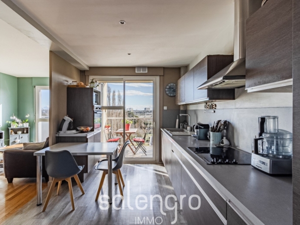 À Caluire-et-Cuire, dans le recherché quartier de Saint-Clair, à quelques pas seulement de la nouvelle passerelle menant à la Cité Internationale et au Parc de la Tête dOr, se dévoile un appartement où lon se sent immédiatement chez soi. Situé en étage élevé avec ascenseur, au sein dune copropriété familiale, ce T4 de 88 m² séduit demblée par sa luminosité omniprésente, sa vue dégagée et son atmosphère chaleureuse.