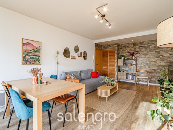 Dès lentrée, la sensation despace et de clarté simpose naturellement. Grâce à son exposition plein sud, lappartement est baigné de lumière tout au long de la journée, sans aucun vis-à-vis, garantissant une atmosphère à la fois chaleureuse et intimiste. Le séjour souvre sur un grand balcon, véritable prolongement de lespace de vie, idéal pour profiter du soleil en toute tranquillité. La cuisine indépendante, spacieuse et entièrement équipée, séduira par sa fonctionnalité et ses volumes généreux. Lespace nuit se compose de deux chambres confortables et calmes, dune salle deau moderne, élégante et fonctionnelle, ainsi que de WC séparés. De nombreux rangements facilitent le quotidien.