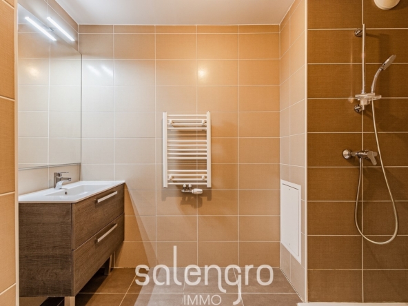 – Salle d’eau contemporaine avec douche à l’italienne et emplacement lave-linge