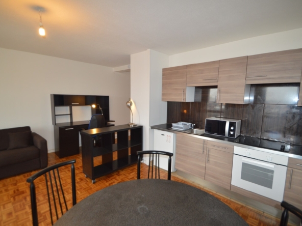 Idéal étudiant – Campus de la Doua à 5 minutes à pieds – Lumineux T1 meublé de 31 m² balcon en dernier étage avec ascenseur.