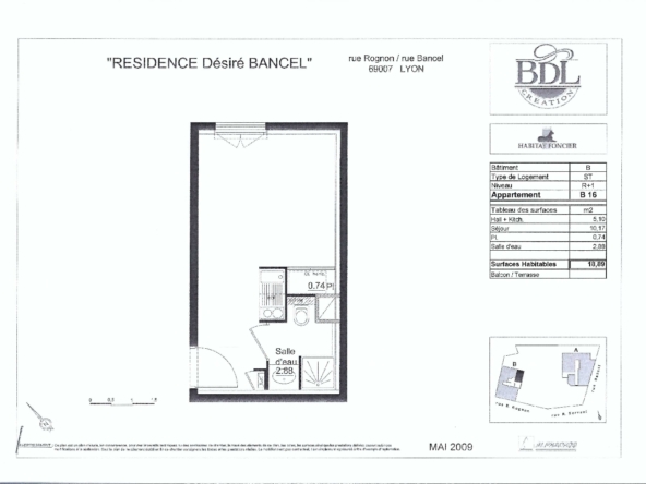 Exclusivité, 6% de rentabilité – Emplacement N°1 Proche Place Jean Macé, Gestionnaire de qualité, Studio au Calme dans résidence sous bail commercial vous garantissant un loyer 12 mois / 12 sans risque d’impayé de loyer et sans vacances locatives, mais aussi sans souci ni frais de gestion. Loyer de 338,92 Euros HT par mois vous garantissant une rentabilité de 6 % – Résidence récente de 2011 avec laverie et local vélo. DPE EN C – Studio très bien conçu de 19 m² donnant sur cour intérieur au calme complet et en très bon état. Aucune perte de place, belles prestations et emplacement de qualité. Bail commercial en tacite reconduction;