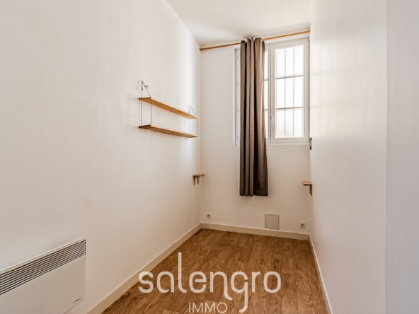 Une chambre côté cour avec placard de rangement aménagé. Salle de bain avec emplacement pour la machine à laver.